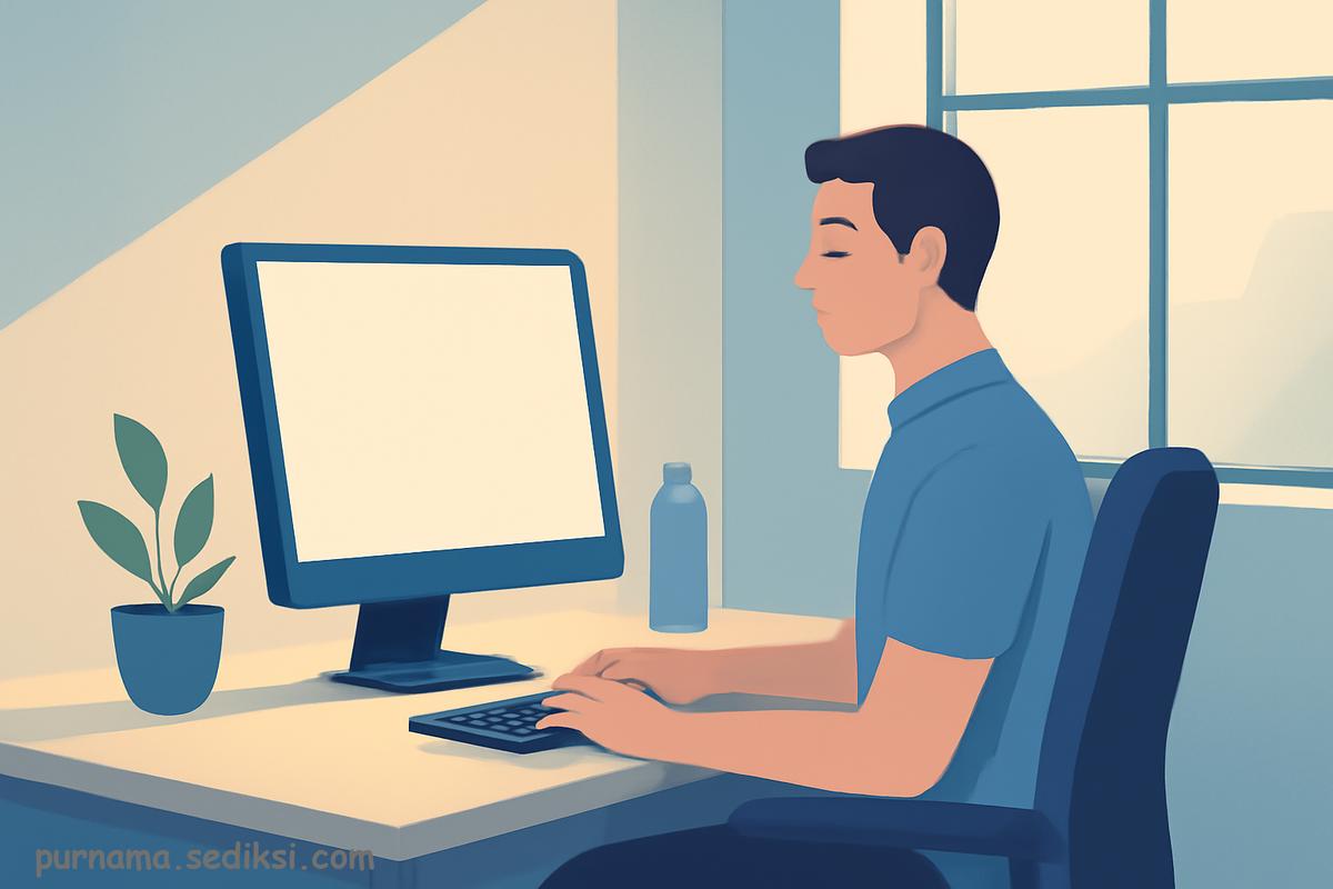 Jika mata mudah kering, tetes mata buatan bisa membantu, tetapi hindari penggunaan berlebihan tanpa saran tenaga medis. Pertimbangkan bekerja dengan perlindungan mata tambahan bagi pekerja di depan layar monitor. Rutin memeriksakan penglihatan ke dokter mata juga penting untuk kesehatan jangka panjang.